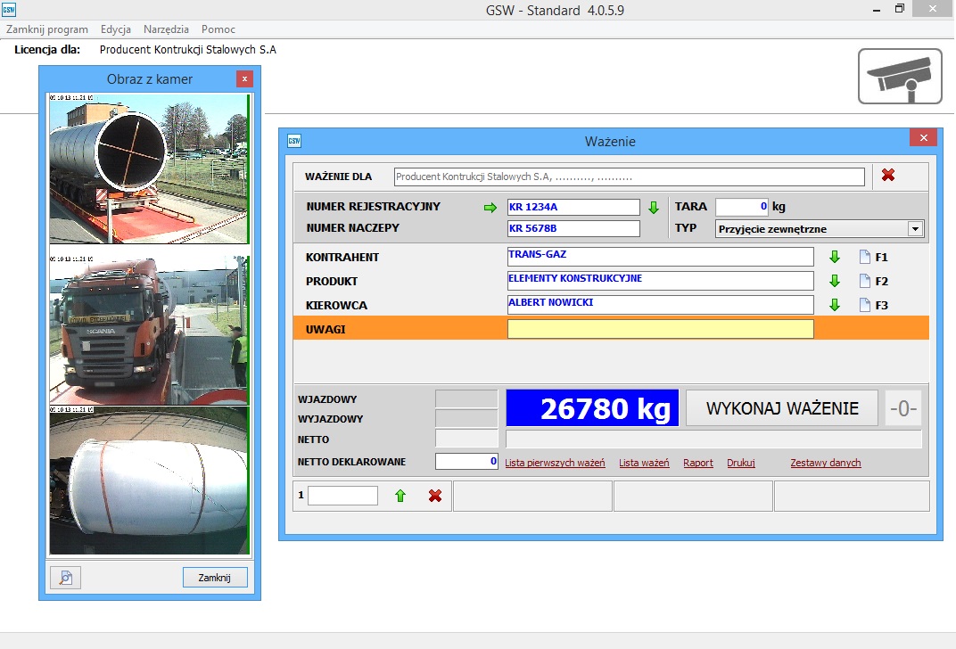 Oprogramowanie do wagi samochodowej