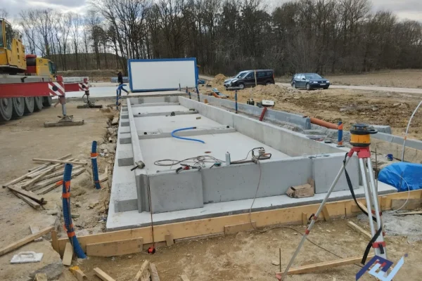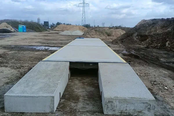 Montaż wagi samochodowej na prefabrykowanych fundamentach przebiega szybko i sprawnie — elementy dostarczane są gotowe do złożenia, co pozwala na uruchomienie systemu wagowego nawet w ciągu jednego dnia roboczego.